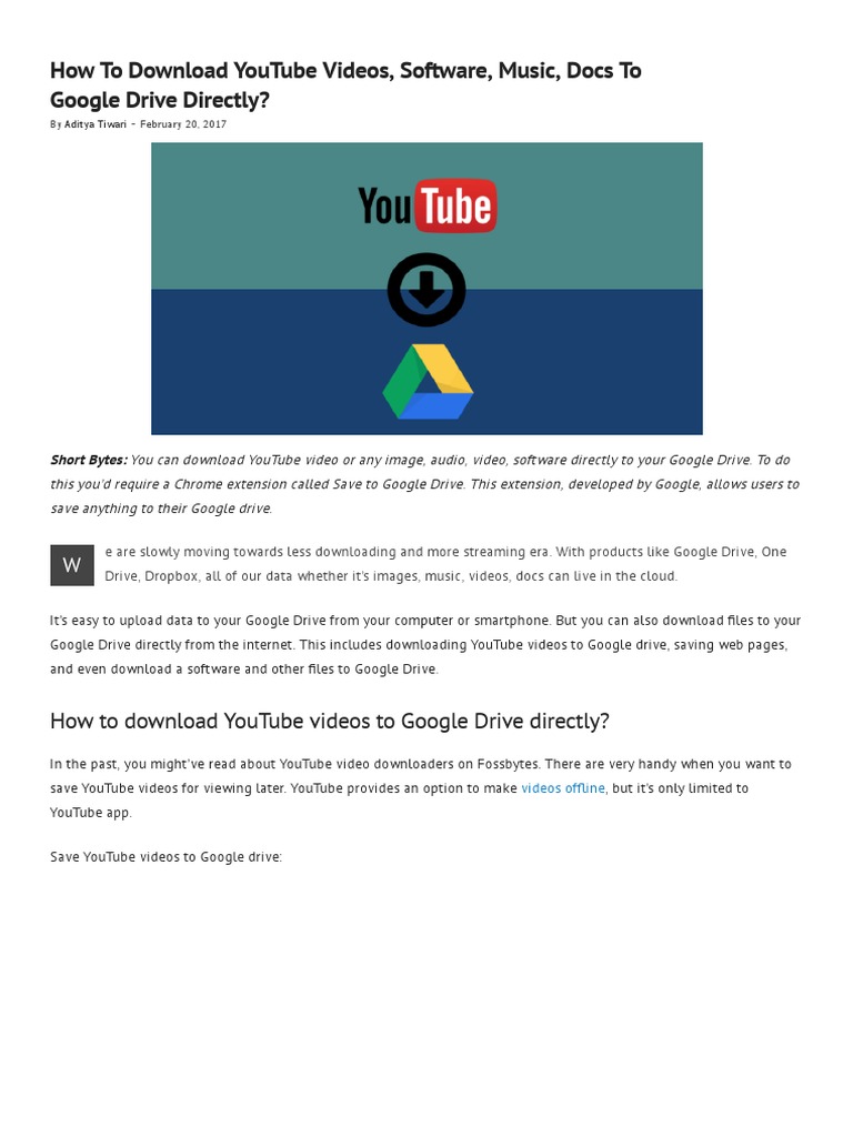 How To Download Youtube Videos Software Music Docs To Google Drive Directly from fossbytes.com $100 off at amazon we may earn a commission for purchases using our links. While it's notoriously late to the mu. You can use takeout to bulk download all of your files in one shot. Yet to the frustration of audiophiles,. Links on android authority may earn us a commission. Fortunately, once you master the download process, y. Whether you want to copy media to your device's storage, or want to stream fr. Sign up for expressvpn today source: